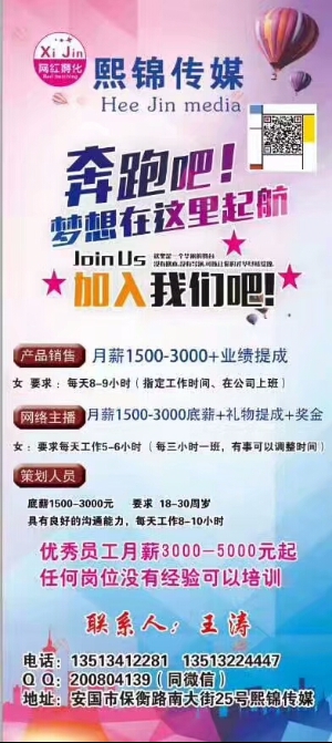 熙錦傳媒是產(chǎn)品銷售以及網(wǎng)絡(luò)直播實(shí)力公司,用實(shí)力打造熱愛(ài)直播群眾們的價(jià)值神態(tài),組建先鋒團(tuán)隊(duì),專業(yè)輔助一些熱愛(ài)直播的年輕人,提供一種新穎的直播方式,商業(yè)對(duì)接,個(gè)人包裝等,直接添加好友