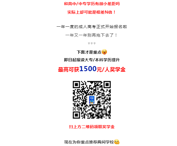 快搶!報考大專/本科學歷,最高專享獎學金1500元/人!!!