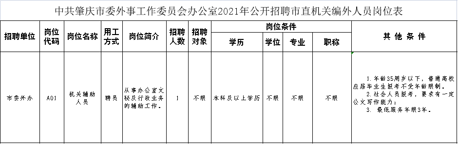 (1)《中共肇慶市委外事工作委員會辦公室公開招聘市直機(jī)關(guān)編外人員報名表》(一式一份,見附件2,可在“肇慶外事”微信公眾號下載);