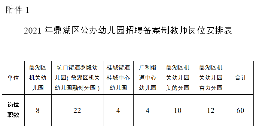 (一)招聘職數(shù)。城區(qū)幼兒園共招聘教師60名(詳見附件)。