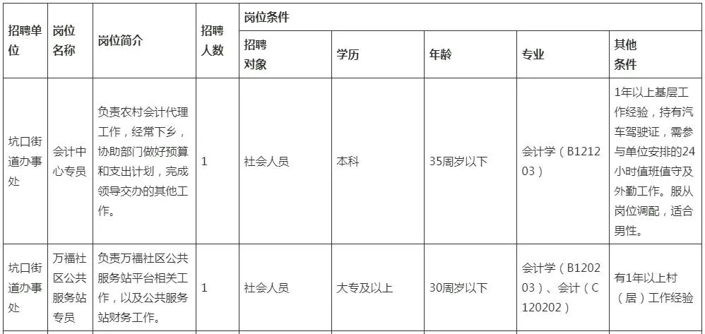 3、報名要求:本次招聘實行現(xiàn)場報名,報考人員需填寫《鼎湖區(qū)坑口街道辦事處公開招聘人員報名表》(報名表可點擊下方鏈接下載附件或到報名地點領?。,F(xiàn)場報名時須提供有效居民身份證、學歷證書原件及復印件(一式兩份)、近期1寸免冠彩色照片3張。如崗位有工作經(jīng)驗要求的,需提供工作經(jīng)驗證明;如崗位要求持有汽車駕駛證的,需提供汽車駕駛證原件及復印件(一式兩份);如崗位要求提供相關證書的,需提供證書原件及復印件(一式兩份) 。