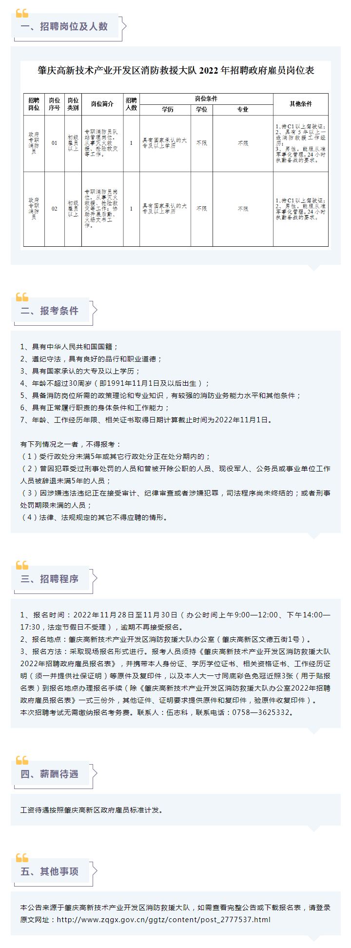 肇慶高新技術(shù)產(chǎn)業(yè)開發(fā)區(qū)消防救援大隊(duì)2022年招聘政府雇員公告