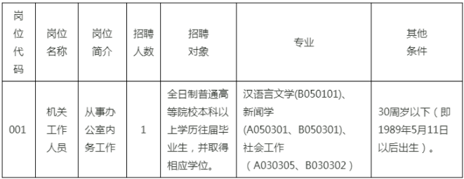 本次共招聘機關雇員1名。